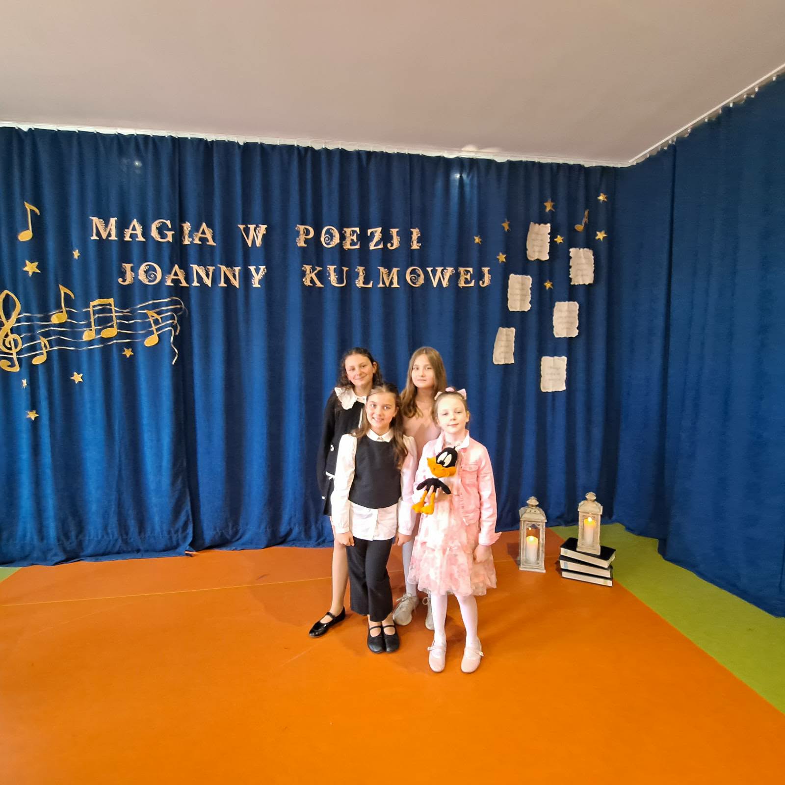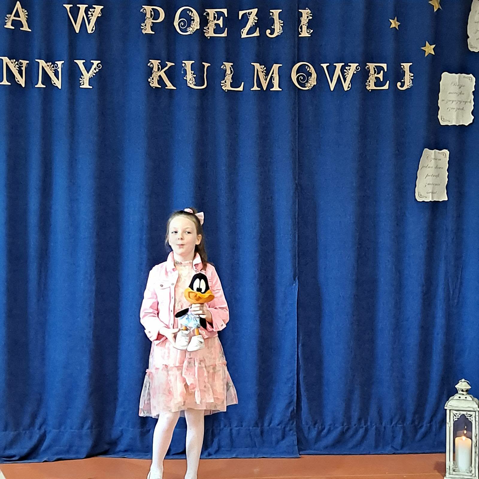 24 kwietnia odbył się Międzyszkolny Konkurs Recytatorski Szkół Podstawowych Gminy Goleniów "Magia w poezji ukryta - wiersze Joanny Kulmowej" w Szkole Podstawowej w Komarowie. Naszą szkołę reprezentowały: Pola Krajcer 1b, Melania Żurawska 3b, Barbara Chojak 4b, Laura Karmazyn 5b. Mamy dobre wieści. W kategorii kl. I- III: Melania otrzymała III miejsce, a w kategorii kl. IV-Vl Basia otrzymała III miejsce. Poziom był bardzo wysoki. Nasze dziewczęta pięknie się zaprezentowały recytując poezję Joanny Kulmowej. Gratulacje.