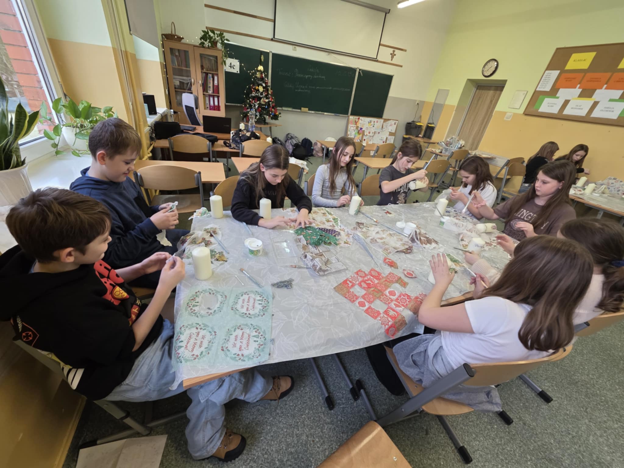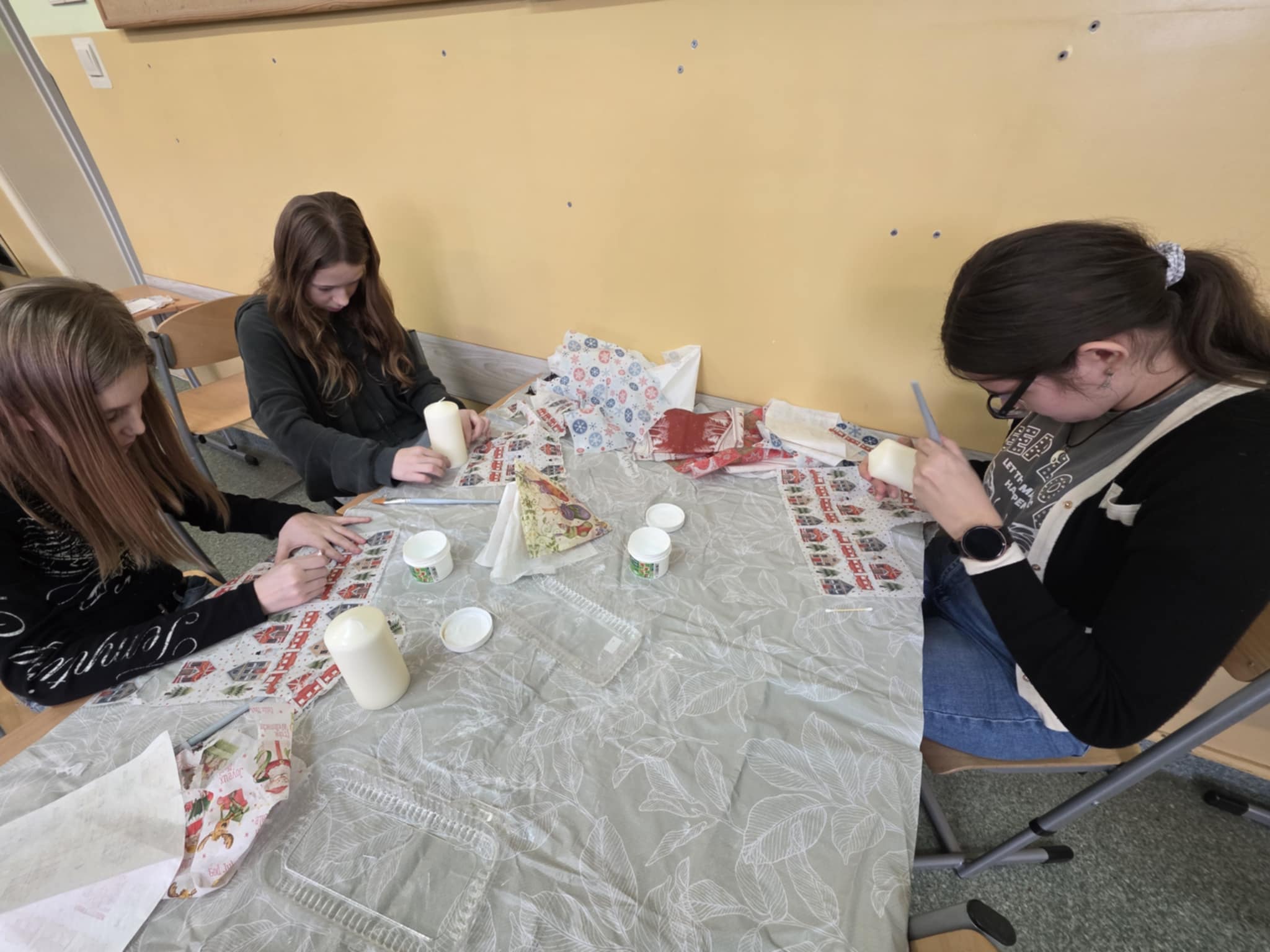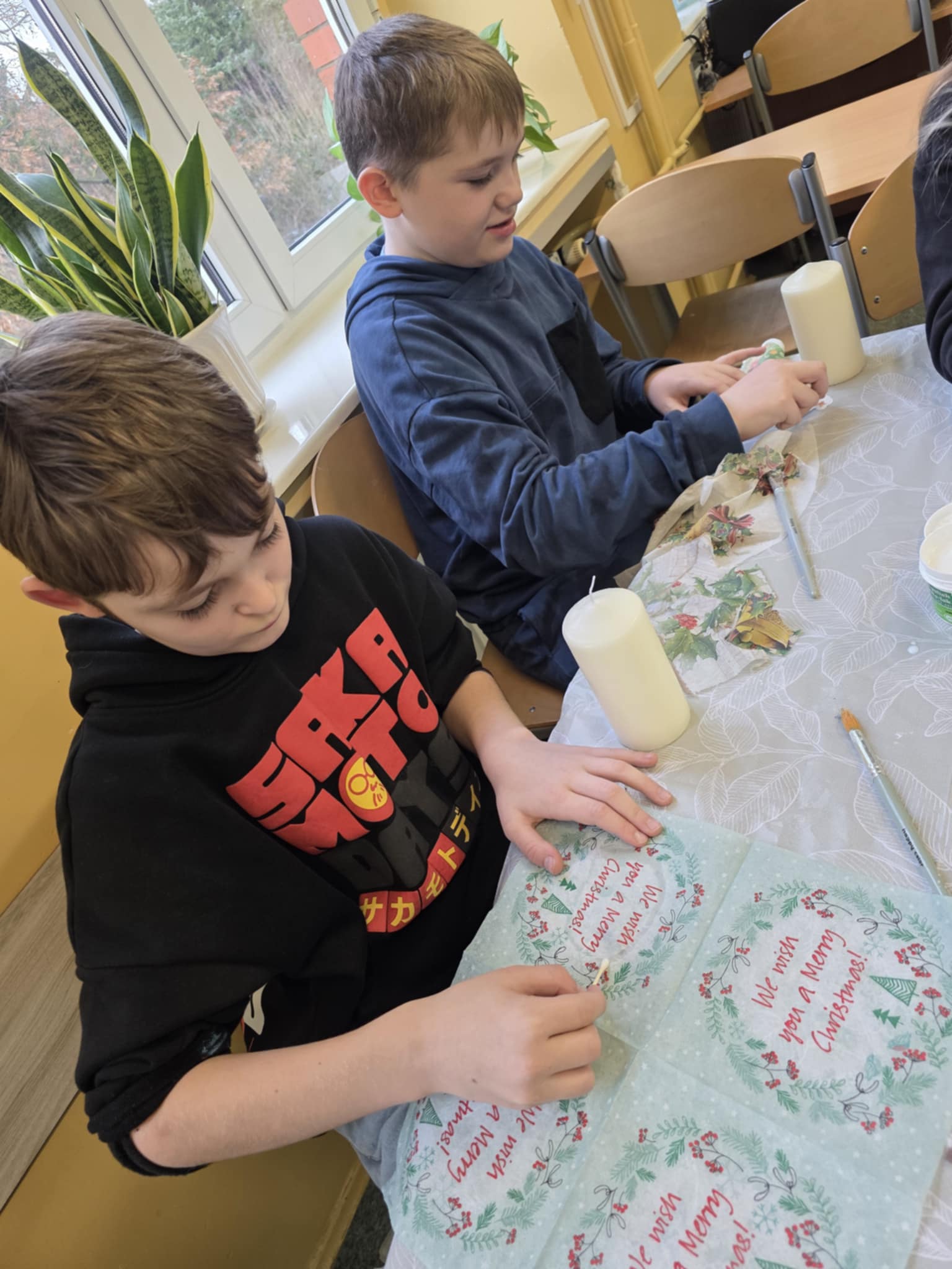 A właściwie… było ich kilku! To uczniowie uczestniczący w zajęciach decoupage, którzy z wielkim zaangażowaniem przygotowali własnoręcznie wykonane upominki. Takie działania pokazują, że kreatywność i chęć sprawiania radości są najlepszą magią świąt. ![]()