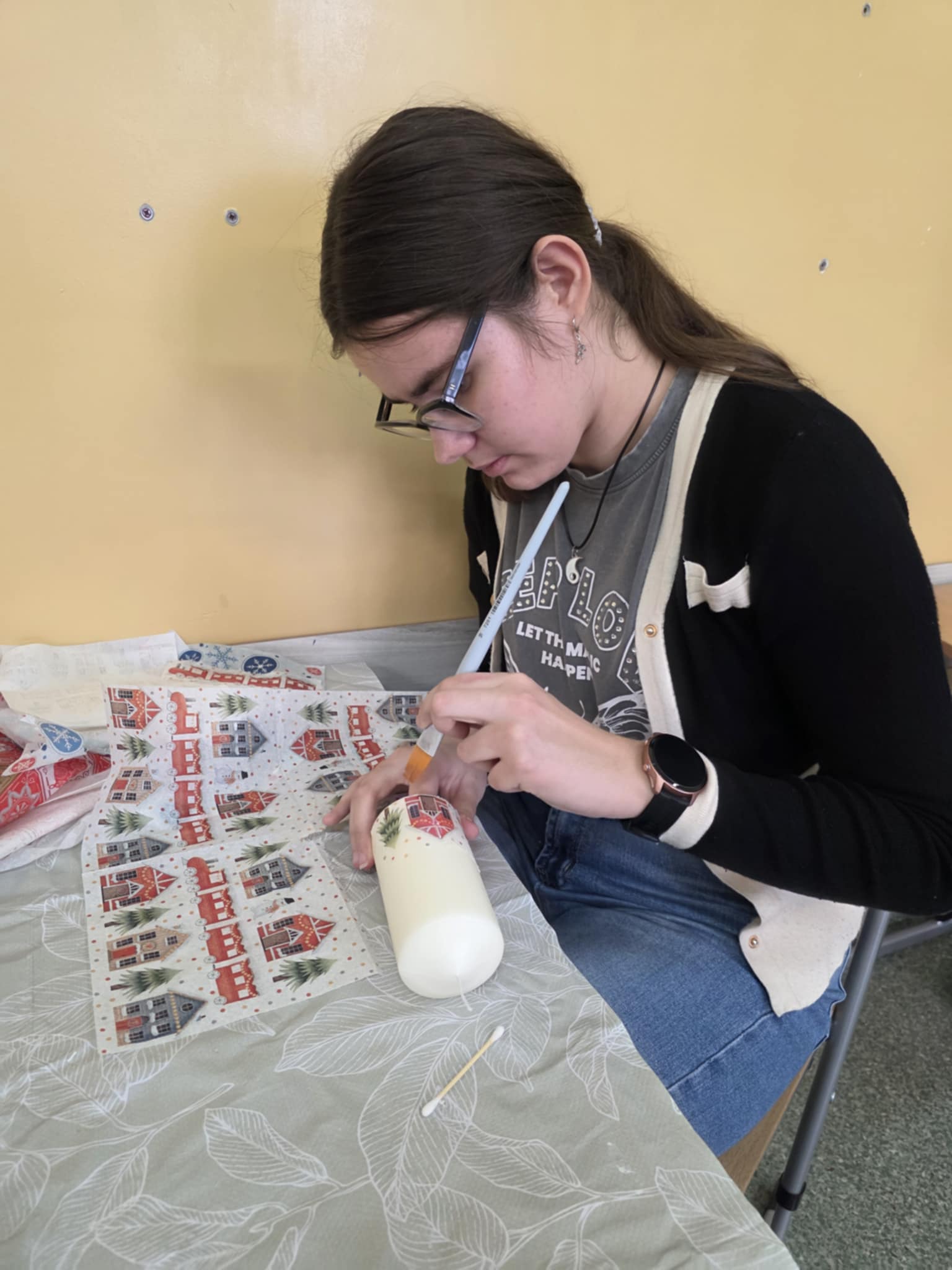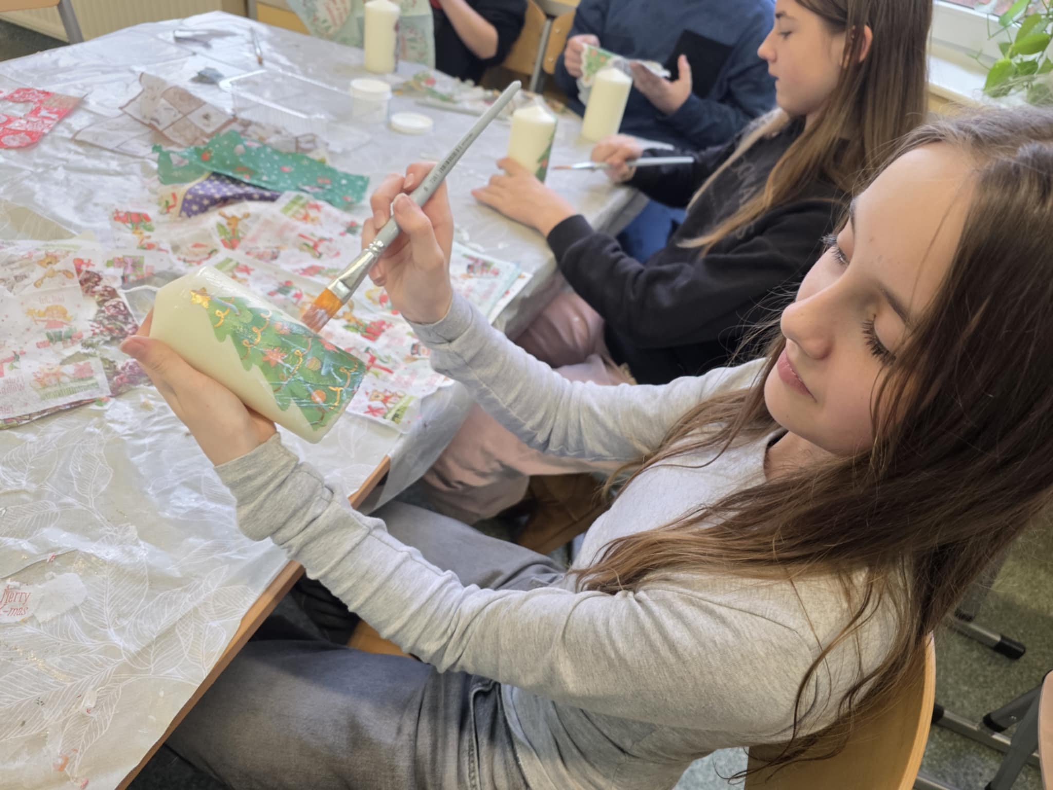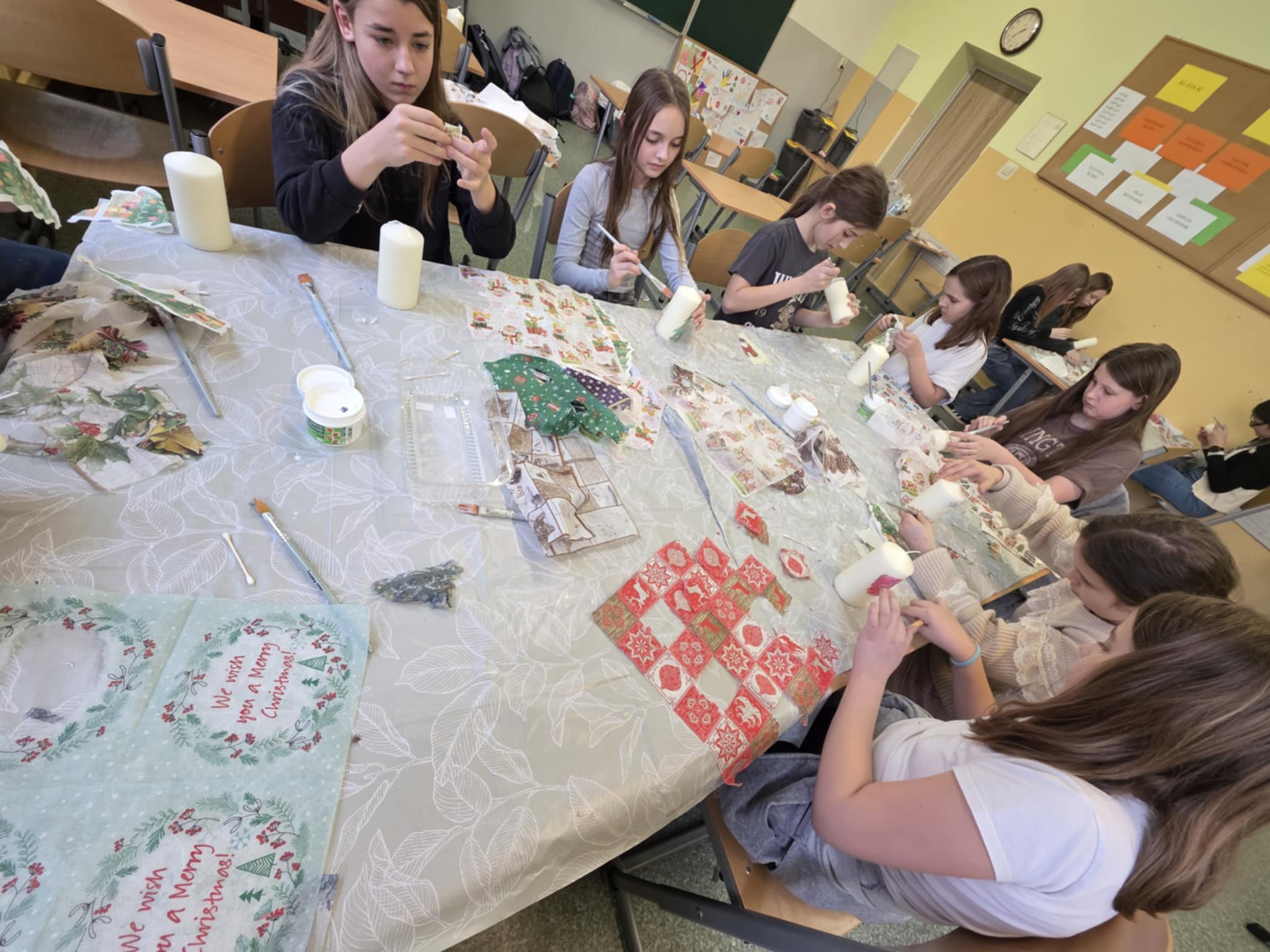 A właściwie… było ich kilku! To uczniowie uczestniczący w zajęciach decoupage, którzy z wielkim zaangażowaniem przygotowali własnoręcznie wykonane upominki. Takie działania pokazują, że kreatywność i chęć sprawiania radości są najlepszą magią świąt. ![]()