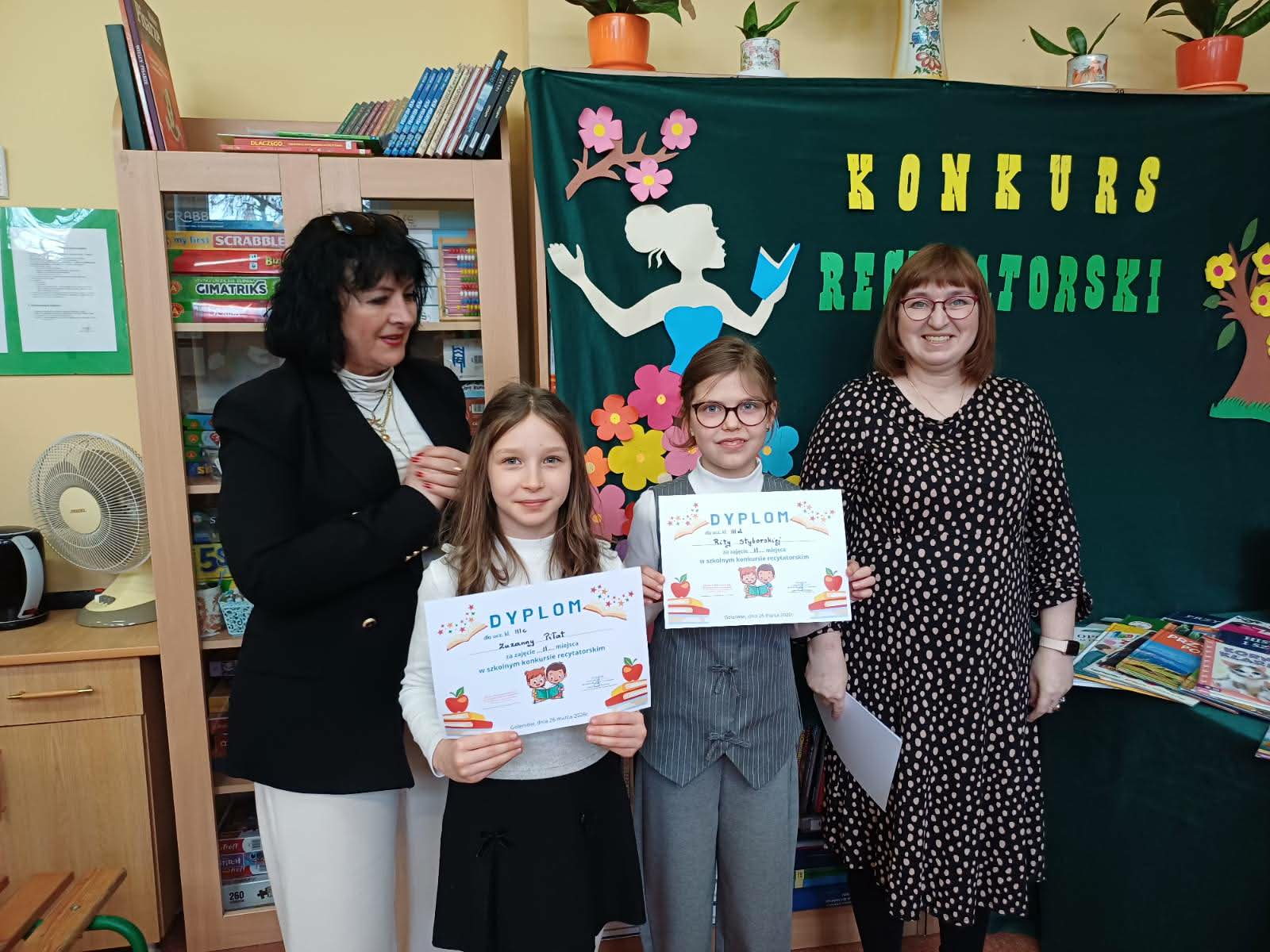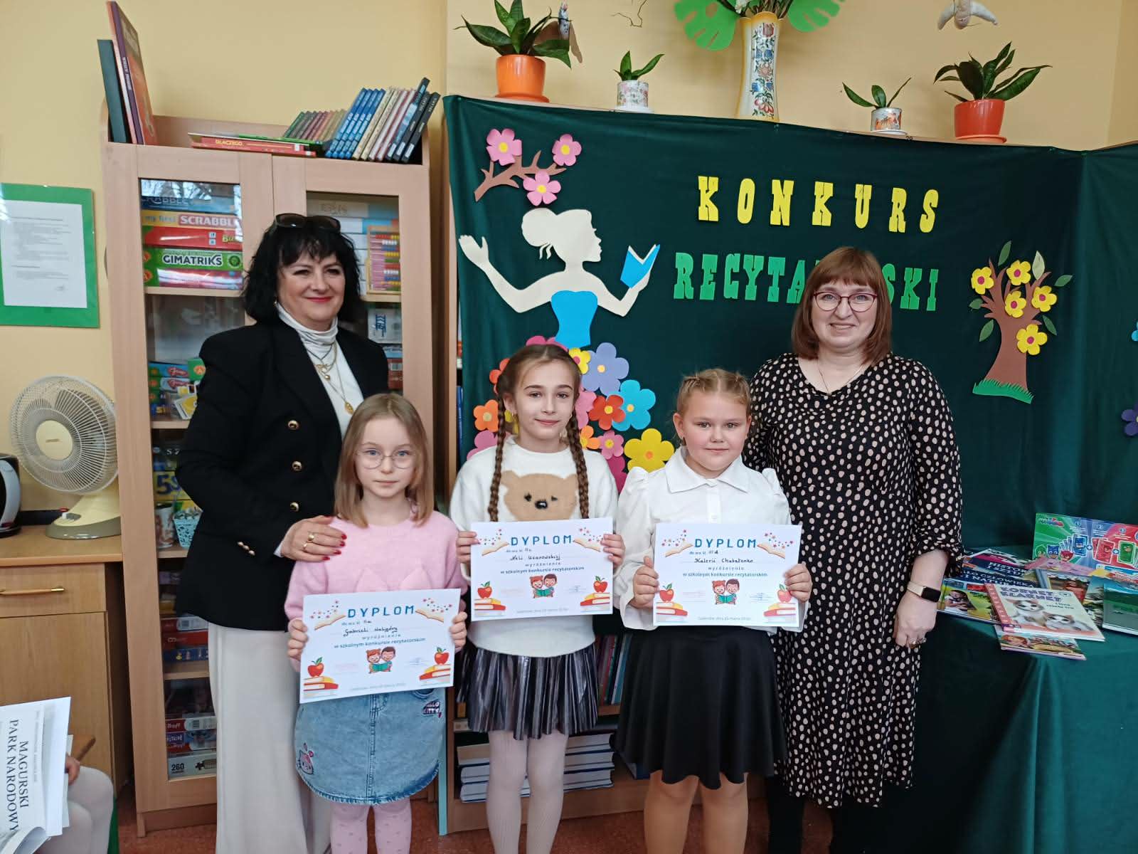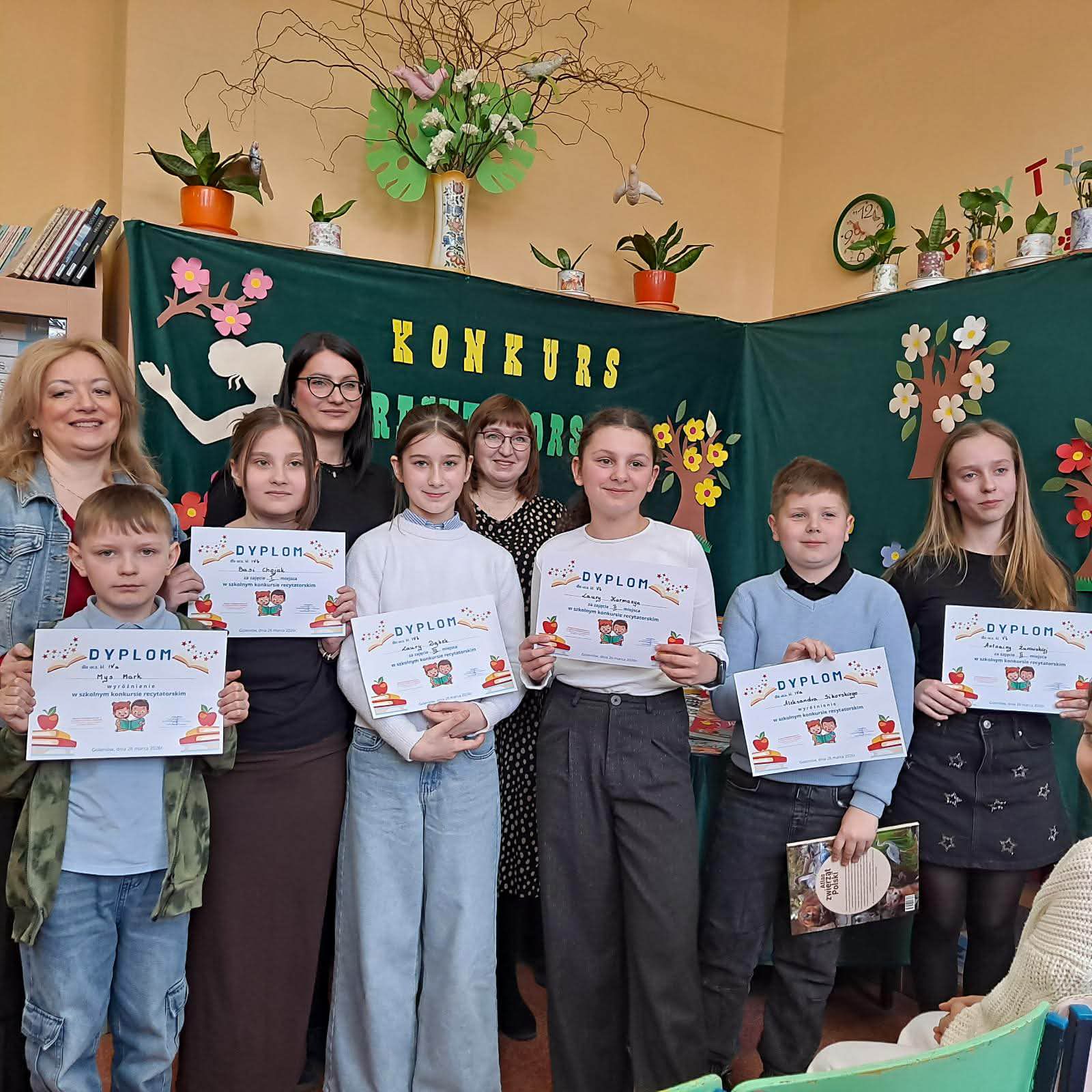 W czwartek 26 marca odbył się Szkolny Konkurs Recytatorski. W kategorii klas IV-VI repertuar obejmował jeden wiersz i fragment prozy. Bardzo ładnie zaprezentowało się sześciu uczniów. Wyniki konkursu IV-VI: - Basia Chojak I miejsce, - Antonina Żurawska II miejsce, - Laura Karmazyn II miejsce, - Laura Dąbek III miejsce, - Aleksander Sikorski wyróżnienie, - Mys Mark - wyróżnienie. W kategorii klas I-III repertuar obejmował 2 wiersze. Wystąpiło 27 uczniów. Poziom przygotowania uczniów był bardzo dobry i wyrównany. Wyniki konkursu I-lll: - Melania Żurawska I miejsce, - Pola Krajcer I miejsce, - Rita Styborska II miejsce, - Zuzanna Piłat II miejsce, - Liliana Wrotnowska III miejsce, - Aurelia Pałyska III miejsce, - Maksymilian Poniewiera III miejsce, - Gabriela Waligóra wyróżnienie, - Nela Użarowska wyróżnienie, - Kaleria Chubatenko wyróżnienie. Wszyscy uczestnicy otrzymali nagrody. Gratulujemy.