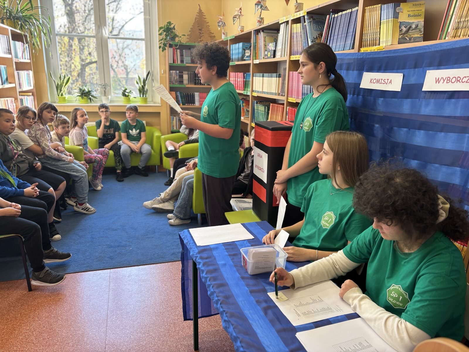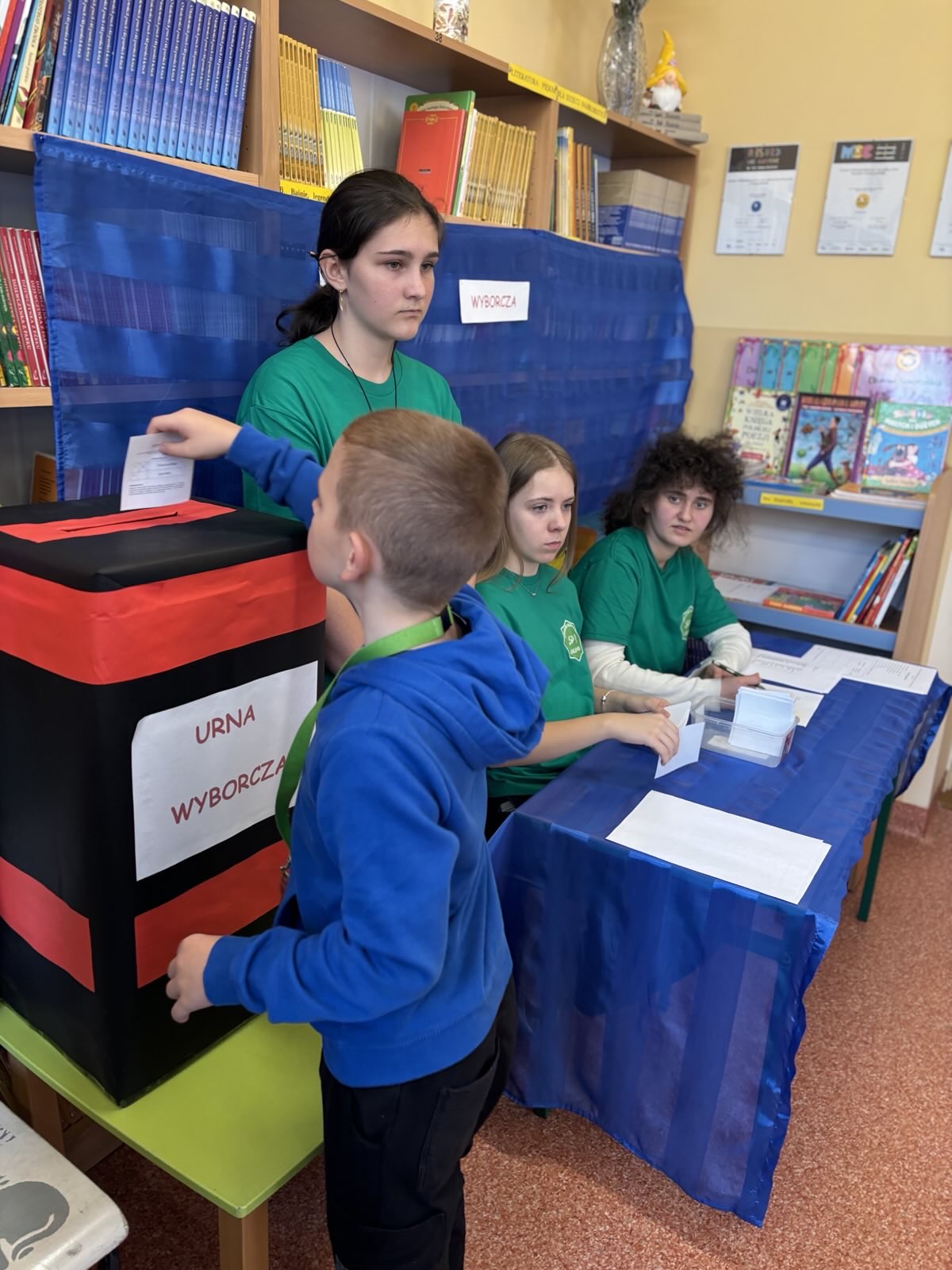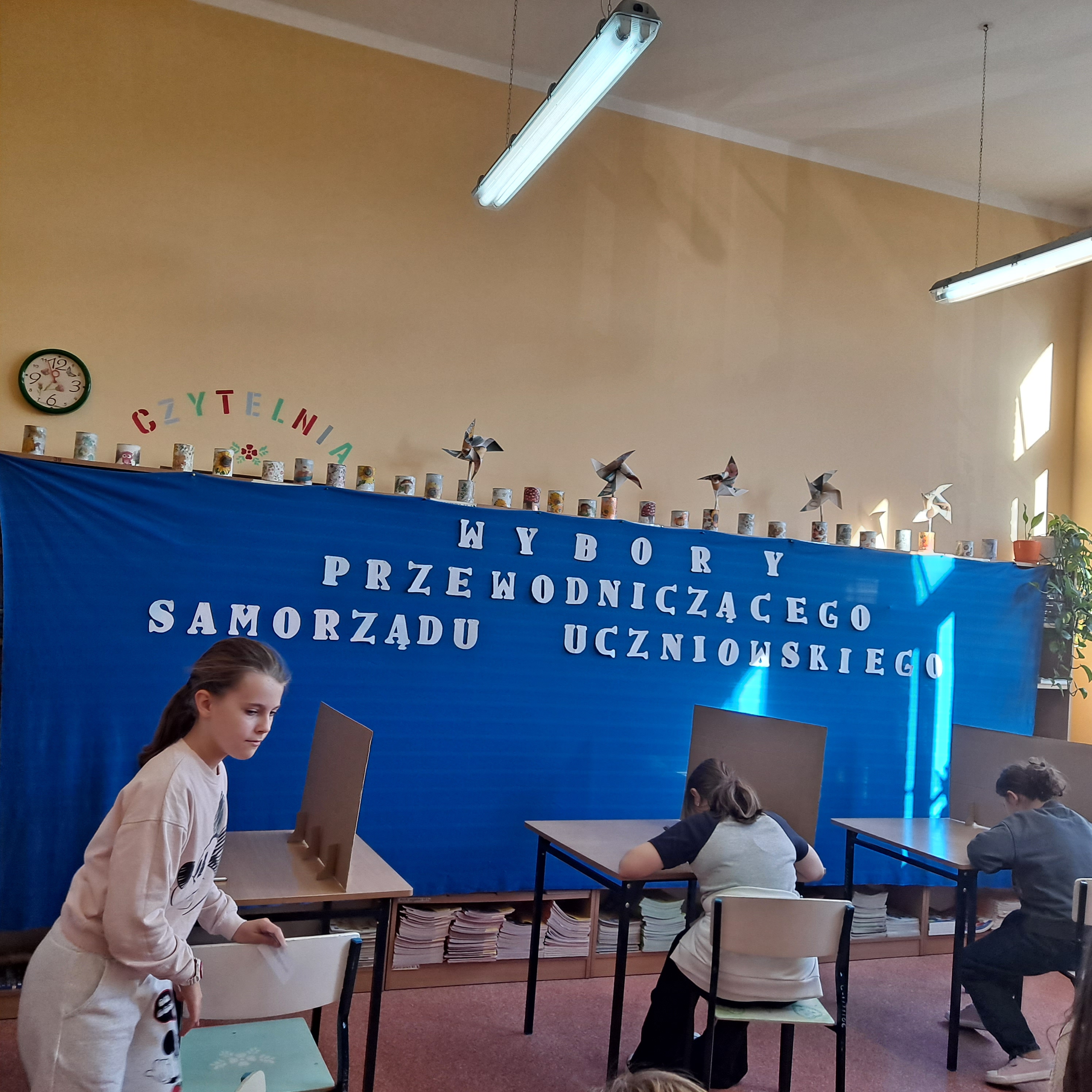 Przez ostatnie tygodnie Samorząd Uczniowski naszej szkoły prowadził kampanię wyborczą. Odbyły się małe lekcje demokracji zapowiadające wybory, które poprowadzili przedstawiciele Samorządu Uczniowskiego: Zofia Pielak, Antoni Marzec, Ania Dobies i Aleksander Sikorski. Kandydaci na Przewodniczącego Samorządu Uczniowskiego: Agata Pałka i Kondrat Jastrzębski; rozwiesili swoje plakaty w szkole, aby przedstawić swoje propozycje działań samorządowych. Na auli odbyła się debata przedwyborcza, a potem wybory na Przewodniczącego Samorządu Uczniowskiego. Lokal wyborczy przygotowano w bibliotece. W wyborach brali udział uczniowie z klas 4-8. Komisja wyborcza w składzie: Alicja Błach, Malwina Cichońska, Amelia Strutyńska, Szymon Wojtysiak; przeprowadziła wybory. Pięknie się prezentowali w zielonych koszulkach zakupionych przez panią dyrektor Joannę Stanuch-Piotrowicz. Na ręce pani dyrektor złożyliśmy podziękowanie i słodki prezent. Po zakończeniu wyborów i przeliczeniu głosów wyłoniono na Przewodniczącego Samorządu Uczniowskiego- Konrada Jastrzębskiego. Agata Pałka otrzymała stanowisko Wiceprzewodniczącej Samorządu Uczniowskiego. Gratulujemy!