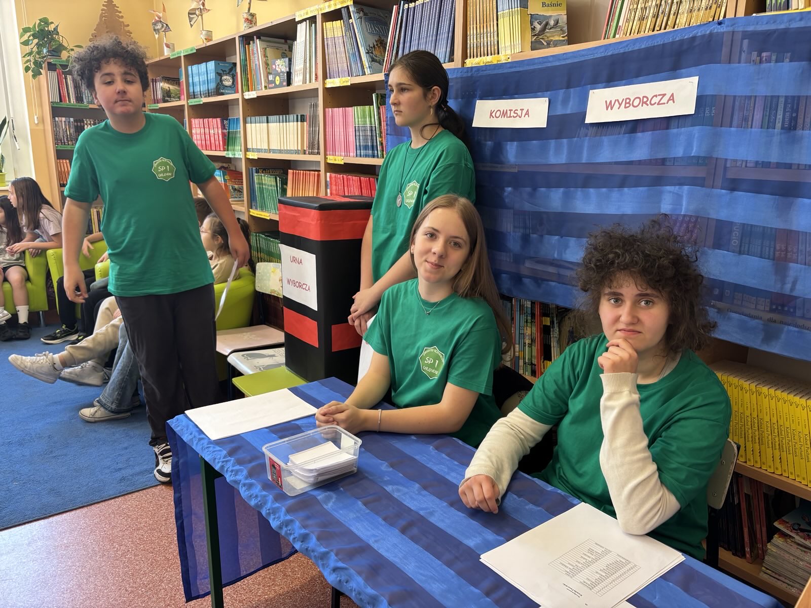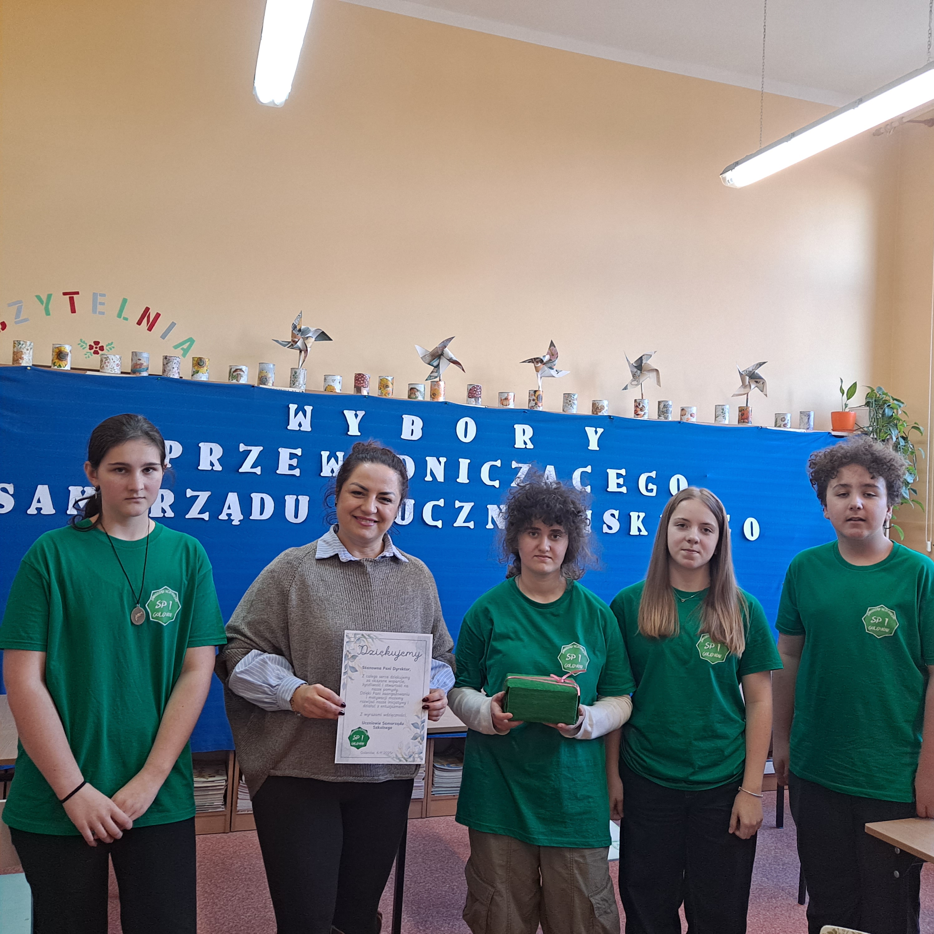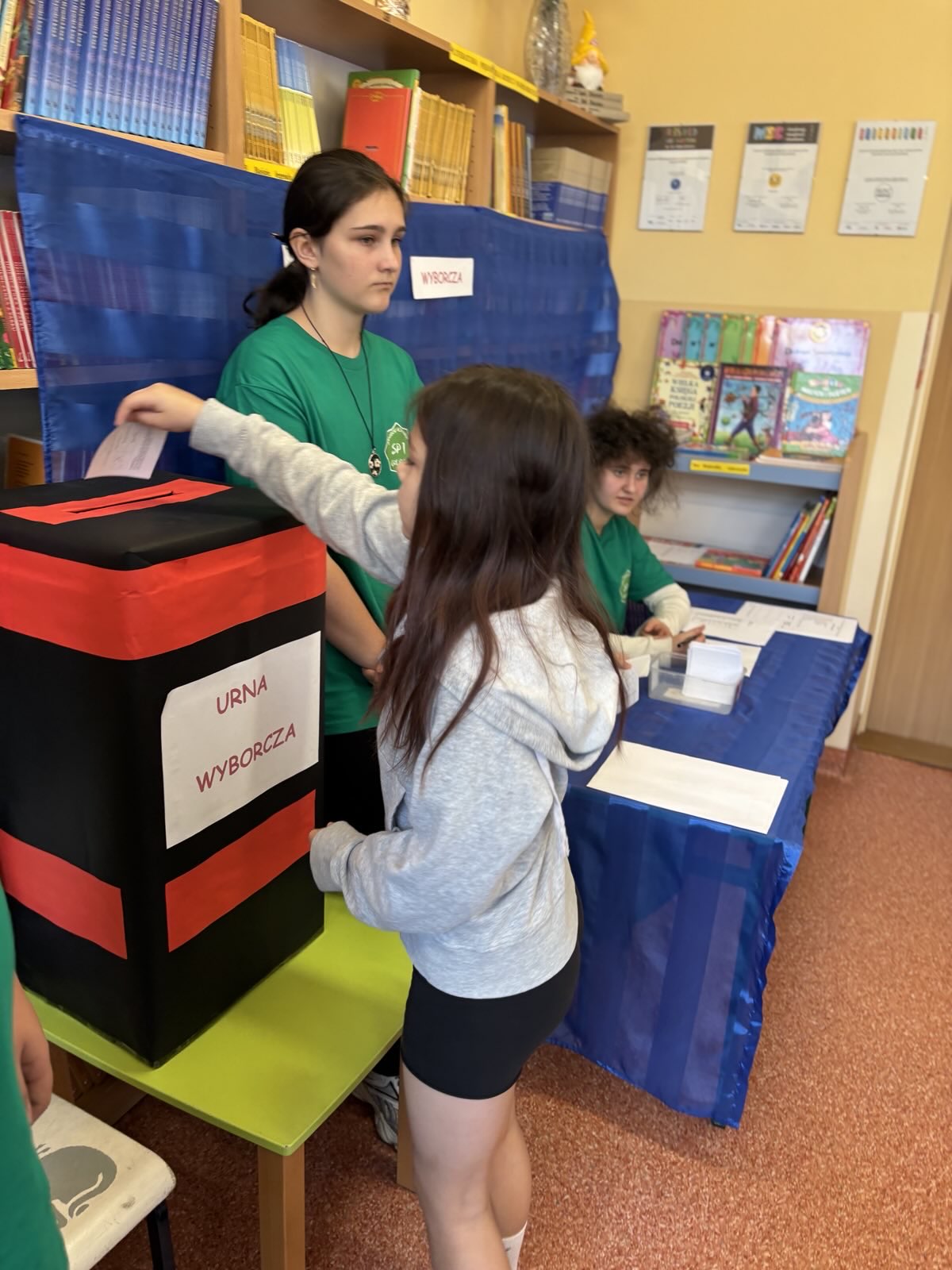 Przez ostatnie tygodnie Samorząd Uczniowski naszej szkoły prowadził kampanię wyborczą. Odbyły się małe lekcje demokracji zapowiadające wybory, które poprowadzili przedstawiciele Samorządu Uczniowskiego: Zofia Pielak, Antoni Marzec, Ania Dobies i Aleksander Sikorski. Kandydaci na Przewodniczącego Samorządu Uczniowskiego: Agata Pałka i Kondrat Jastrzębski; rozwiesili swoje plakaty w szkole, aby przedstawić swoje propozycje działań samorządowych. Na auli odbyła się debata przedwyborcza, a potem wybory na Przewodniczącego Samorządu Uczniowskiego. Lokal wyborczy przygotowano w bibliotece. W wyborach brali udział uczniowie z klas 4-8. Komisja wyborcza w składzie: Alicja Błach, Malwina Cichońska, Amelia Strutyńska, Szymon Wojtysiak; przeprowadziła wybory. Pięknie się prezentowali w zielonych koszulkach zakupionych przez panią dyrektor Joannę Stanuch-Piotrowicz. Na ręce pani dyrektor złożyliśmy podziękowanie i słodki prezent. Po zakończeniu wyborów i przeliczeniu głosów wyłoniono na Przewodniczącego Samorządu Uczniowskiego- Konrada Jastrzębskiego. Agata Pałka otrzymała stanowisko Wiceprzewodniczącej Samorządu Uczniowskiego. Gratulujemy!